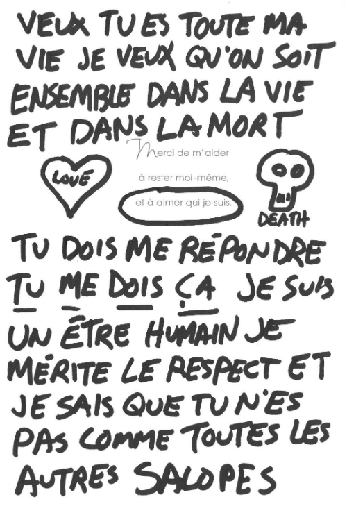 Elle — Come on ! « Je veux qu’on soit ensemble dans la vie ET DANS LA MORT »… et en plus il a dessiné un crâne ! Qu’est-ce que tu veux de plus ?