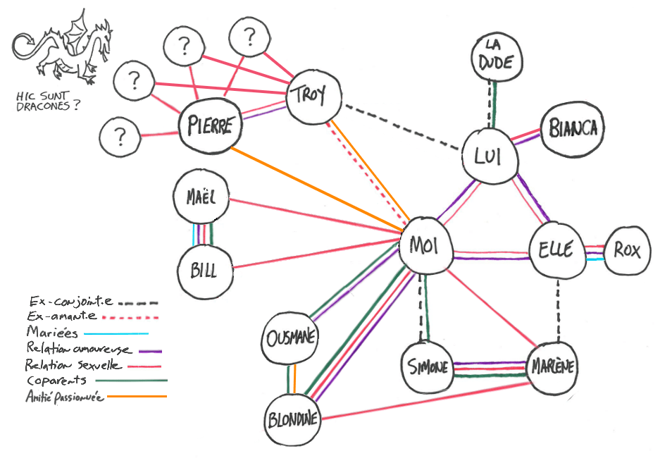 MOI — Pansexuelle dont le cynisme désabusé est à peine entamé par son statut de licorne en caramel. On l’appelle parfois par son prénom, qui est Anne. Quand elle travaille au donjon de Maîtresse Sweet Domination, elle se faisait appeler Madame Séverine, avant de devenir partenaire et changer son nom pour Maîtresse Atrabile. Quand elle participe à des scènes BDSM, on l’appelle Langoisse. Les autres l’appellent Anne – ou maman. Ou «toune», quand on est une butch outaouaise.